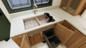 Dirancang dengan pendekatan yang berpusat pada pengguna, profil pengguna utama yaitu seorang ibu rumah tangga yang aktif memasak dan menjadikan dapur sebagai pusat kehidupan keluarga. Sesuai dengan kebiasaan memasak khas Asia Tenggara, desain ini dilengkapi dengan BLANCO Subline 350/350-U, kompor empat tungku, dan penghisap asap kompor.