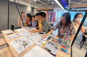 Selanjutnya, para siswa mengikuti workshop pembuatan moodboard interior. Dalam kegiatan ini, peserta diajak untuk mengeksplorasi ide dan konsep ruang melalui pemilihan warna, material, serta referensi visual. Workshop berlangsung secara interaktif dengan pendampingan dari dosen dan mahasiswa Desain Interior Untar.