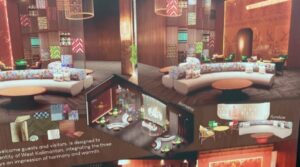 Perancangan ruang meliputi area lobby, community hub, dan exhibition space yang dirancang sebagai wadah interaksi, kolaborasi, serta apresiasi budaya. Setiap zona memiliki karakter visual yang kuat namun tetap terhubung dalam satu benang merah konsep “Threads of Harmony”. Dengan pendekatan desain yang inovatif dan konseptual, karya ini menunjukkan kemampuan mahasiswa dalam mengintegrasikan riset budaya, kreativitas, dan solusi desain interior secara komprehensif, sekaligus menjadi refleksi semangat toleransi dan kebersamaan dalam balutan estetika kontemporer.