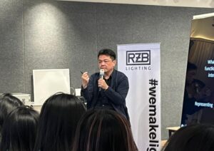 Acara kemudian dilanjutkan dengan sesi brand knowledge dari RZB Lighting. Pada sesi ini, peserta mendapatkan pemahaman lebih dalam mengenai inovasi produk dan teknologi pencahayaan yang relevan dengan kebutuhan desain interior masa kini. Penjelasan ini memberikan gambaran nyata tentang bagaimana lighting dapat dioptimalkan untuk mendukung kualitas ruang sekaligus efisiensi energi.